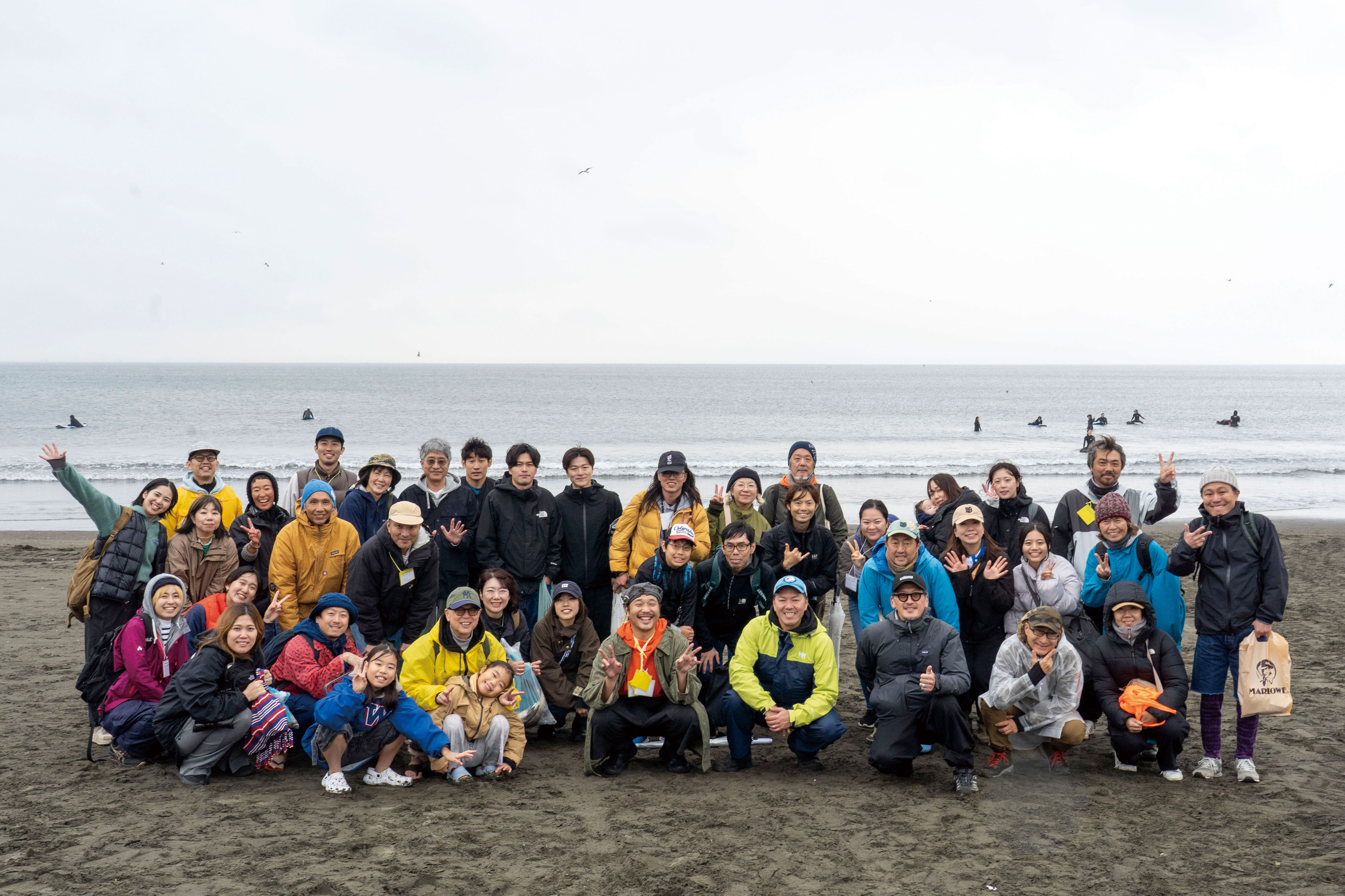 ビーチクリーンに参加した、湘南の海を愛する人たち。