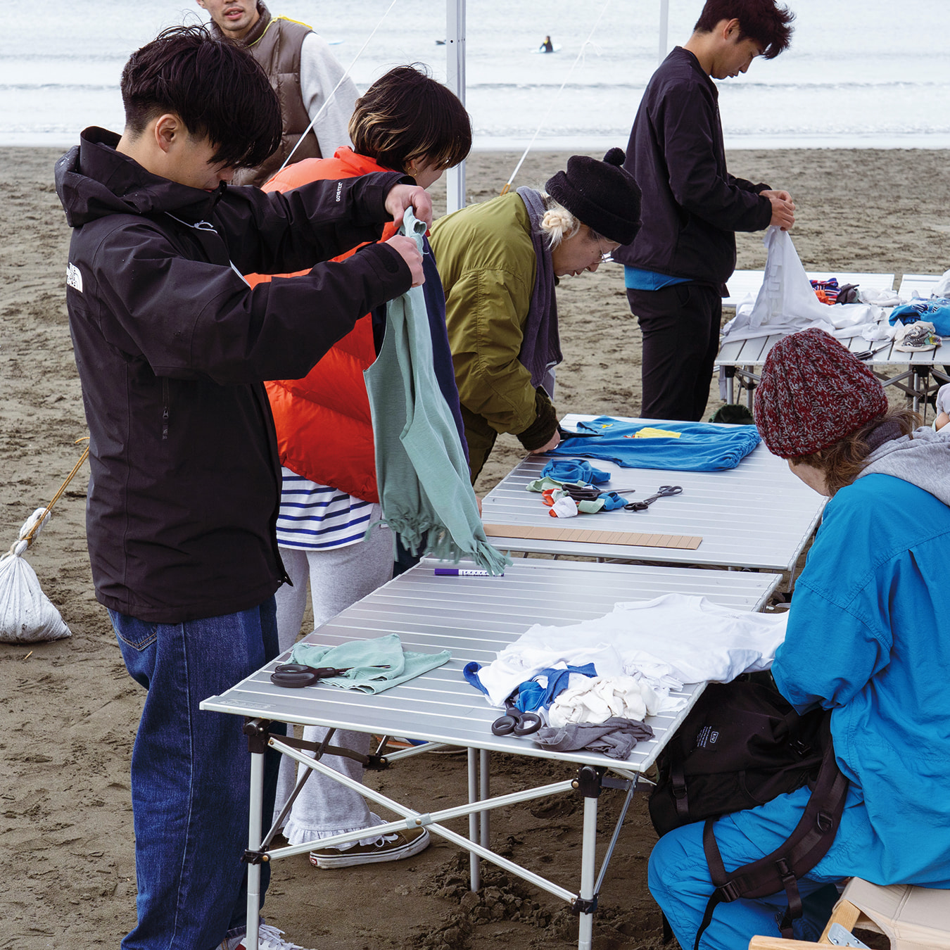 今回のイベントで草野が特にこだわったのは、「地域にリスペクトを持つ」ことと、参加者同士の繋がりを生む設計です。「お客様にファンになってもらうためには、まずビームスが地域に寄り添うことが重要だと思うんです」と語る草野。「湘南といえば海であり、海に関心を持つ人々が多いことから、ビームスらしいやり方で海に触れていきたいと考え、グリーンバードの佐藤さんに相談しながらイベントを企画しました」。参加者だけでなく湘南に住む人にも喜んでもらうため、地域の方々と話す機会を設け、率直な意見を募集。その結果、広域からの参加者応募をやめ、顔の見える範囲に留めてコミュニケーションの取りやすいやり方を採用したそう。また、地引網で獲れた魚を無駄にしないよう、地域の人気惣菜屋さんや馴染みの居酒屋さんに事前に声をかけるなど、地域に根ざした運営を徹底しました。