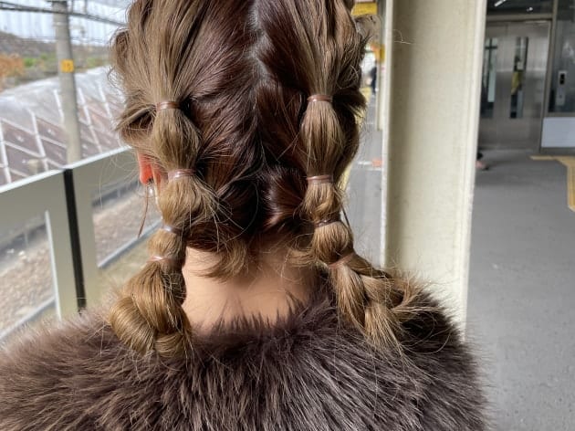 ヘアスタイルはゴムだけで自分でツインアレンジを♬