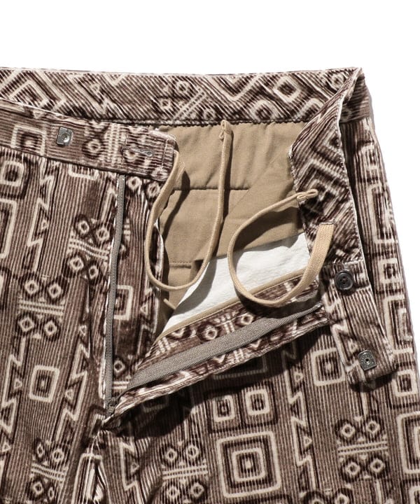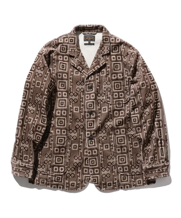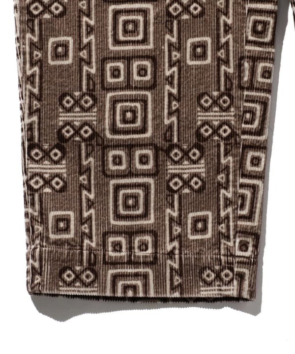 コーデュロイ生地にジオメトリック柄とペイズリー柄を同色系でデザインされております。