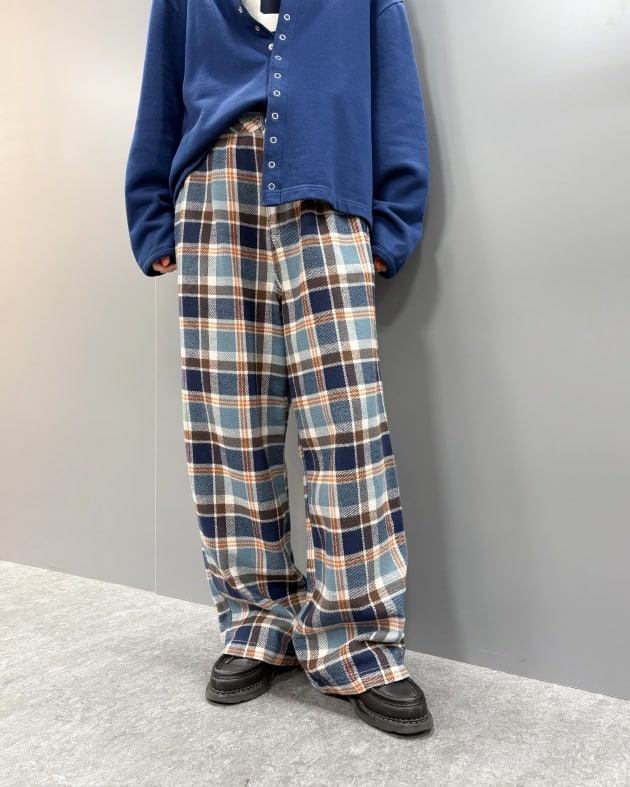 BEAMS BOY / チェック ロング ダブルヘムスラックス