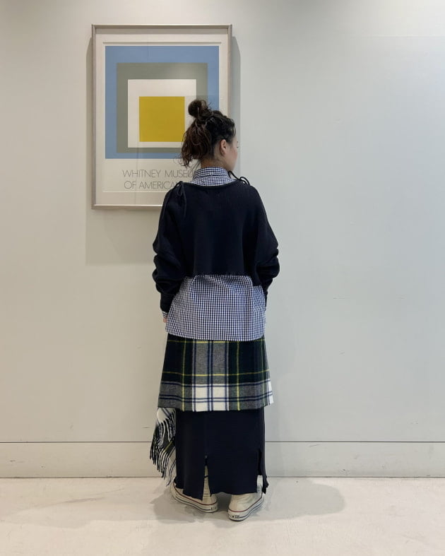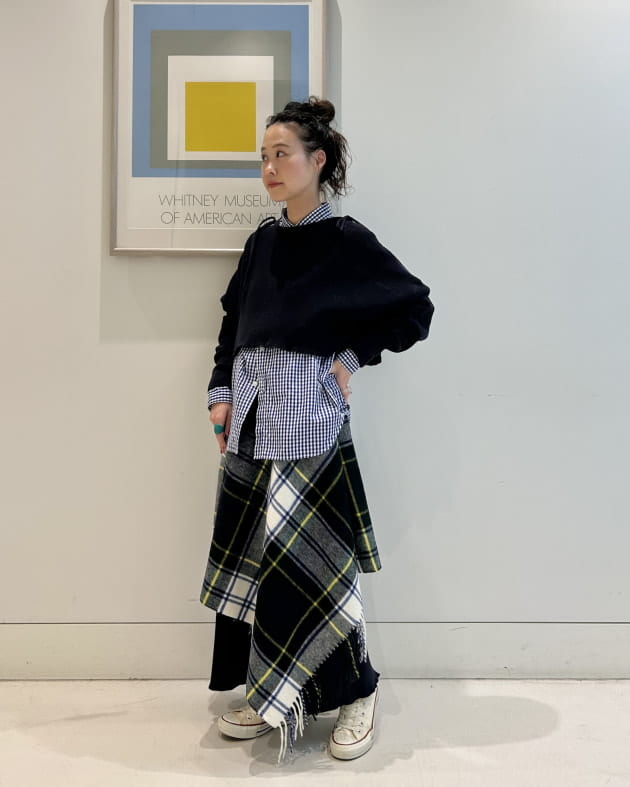 後ろからちらっと見えるギンガムチェックもポイント!
