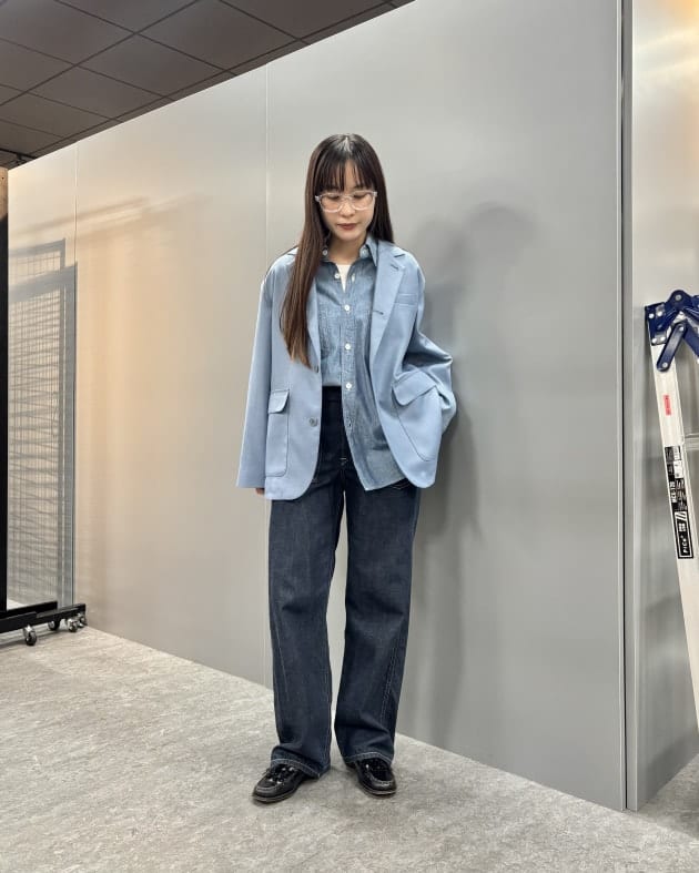 ボトムスにデニムを重ねて、ボーイッシュに。