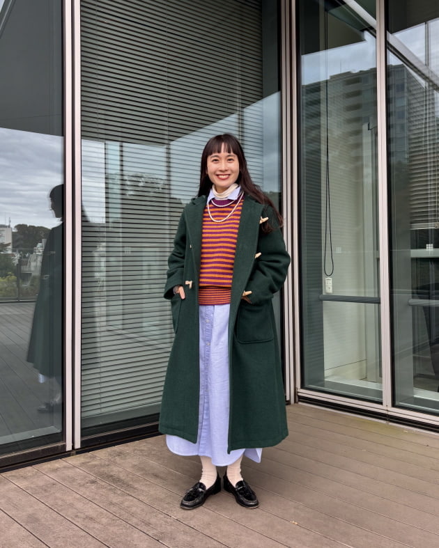 あやのさんが着用しているのは、オリーブ。