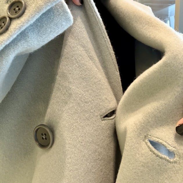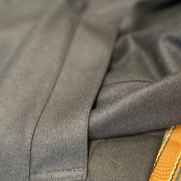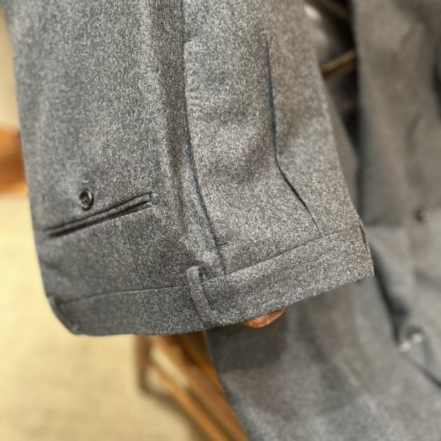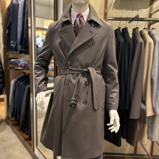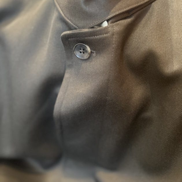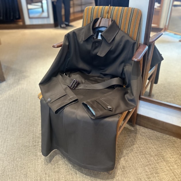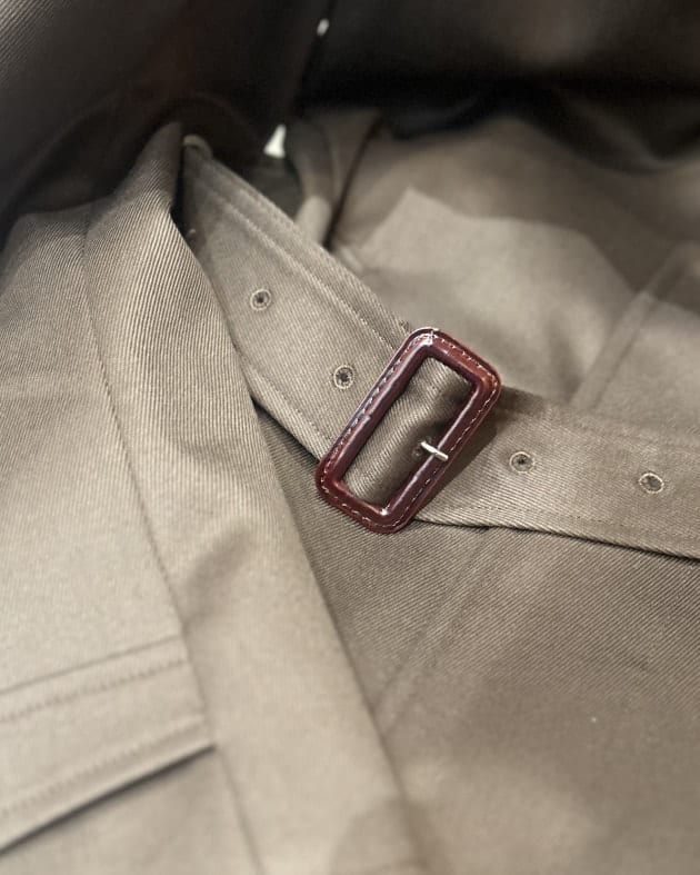 グレイッシュなベージュに見えるカーキ。ウールギャバジンてのが良いですね。