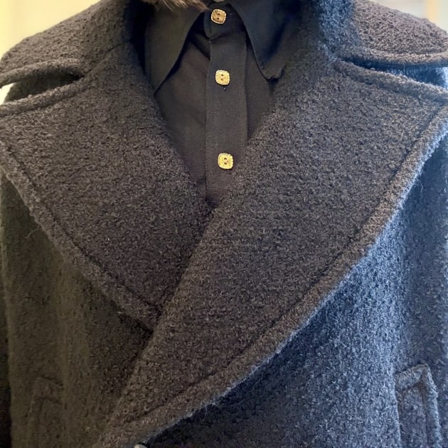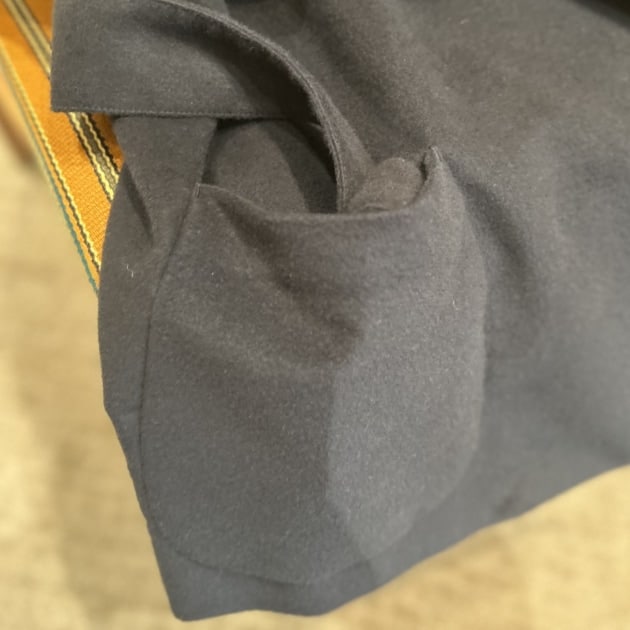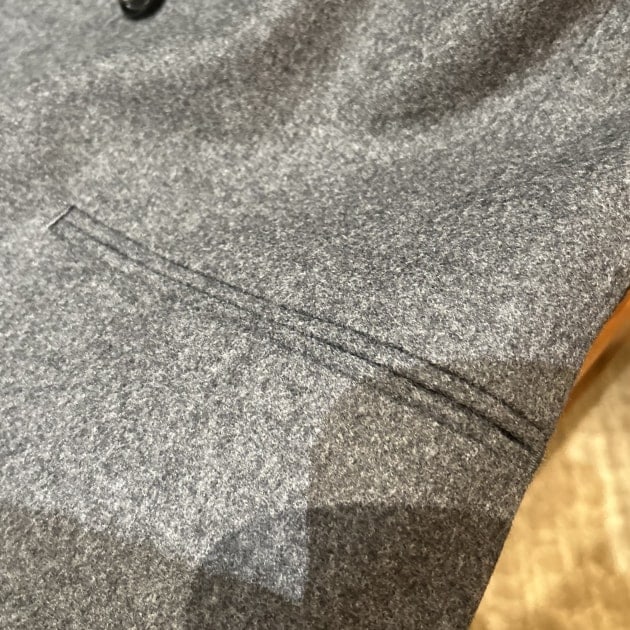 ラペルから前見頃裾先、肩先にはハンドステッチを施しており本格的な仕様のジャケット。