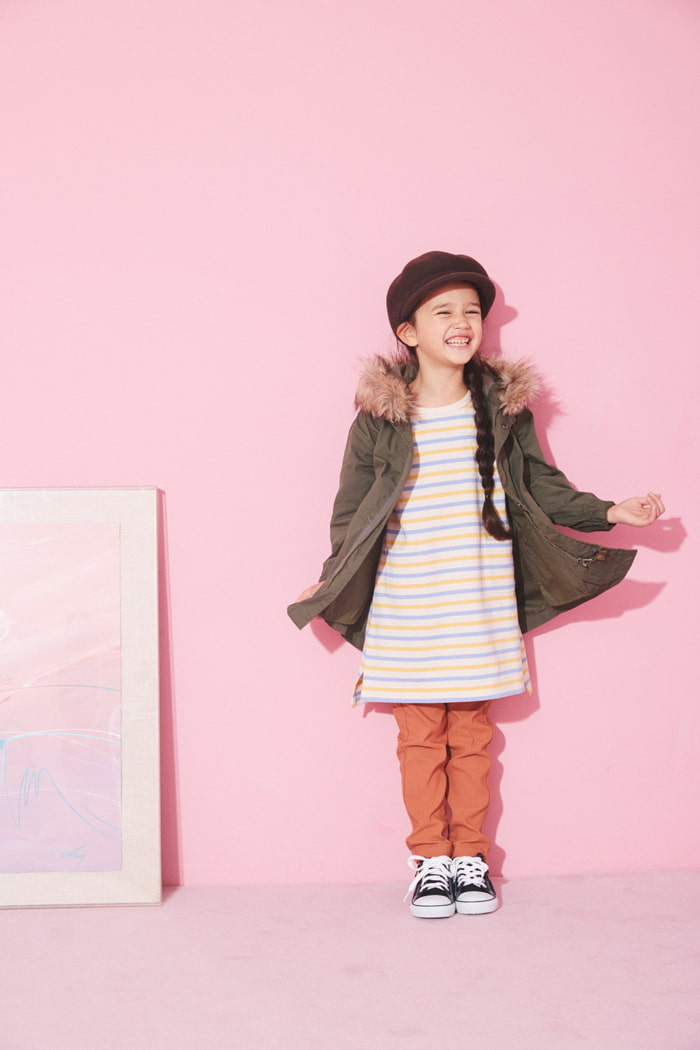 < BEAMS mini > was born from the desire to “bring the sense of security and reliability of BEAMS to children's clothing.” Rather than imposing an adult style on us, we place importance on children choosing what they like and having fun.We have created a ``Naughty Style'' for ages 3 to 7, and a slightly older ``Boys & Style'' for ages 8 to 12. We propose "Girls style".