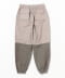 60%コットン。40%ナイロン。リップストップ生地。ワイドテーパードシルエット。ジッパーフライ。フロントにスランテッドポケット。バックにベローズポケット。ウエストバンド。ウエスト、裾にゴム。左膝にシリコンパッチ。フロント、バックで色・生地切り替え。ウォッシュ加工。日本製。