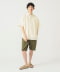 ドライな質感が魅力のヘンプ混の生地を使用。程よいハリ感でワイドなシルエットを美しく保ちます。