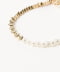 艶やかなフェイクパールと、無機質な表情のメタルパーツを組み合わせたアシンメトリーなデザインのブレスレット。
