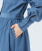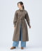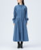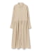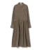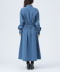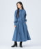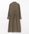 ■デザイン季節感のある細コール生地のワンピース。ウエストのボタンの留め位置を調整することで、シルエットの変化を楽しめるアイテムです。一番きつく留めると、ウエストが引き締まり、女性らしいフィット&フレアのシルエットに。