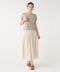 旬な短丈ニットと、広がりすぎない上品なギャザースカートを組み合わせたセットアイテム。フレンチスリーブが肩周りを華奢に見せつつ、全体を今っぽいバランスに落とし込みました。上下別々でも主役級の存在感を放ち、夏のワードローブの幅を広げてくれます。