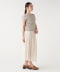 トップスには型崩れしにくい総針編みを採用し、きれいめな表情をキープ。スカートはマットな光沢感が大人っぽく、裏地付きながら軽い穿き心地を叶えます。