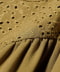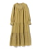 華やかなボリュームのあるシルエットが魅力的なティアードワンピース。カフス、ヨーク切替部分、裾に使用された刺繍生地と無地の素材のコントラストがデザインポイントです。ヨーク切替の刺繍生地部分は、薄手の素材を重ねて肌の透け感をおさえた仕様に。