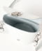 イングランド・レスターの自社工場で、職人が一つずつ手作業で仕立てた上質な牛革を使用。バックルやナスカンなどの金属パーツには、重厚感のある合金を使用しており、レザーの白さと相まって洗練されたラグジュアリーなテクスチャーに仕上がっています。
