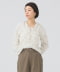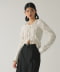 織りで立体感を出した特別なストライプ生地を使用したVネックブラウス。ボディは着丈を短めに設定しており、様々なボトムスとバランスを取りやすいのが特徴です。前見頃の縦シャーリング部分と前端にはフリルギャザーがあしらわれ、ロマンティックなムードを存分に取り入れたデザイン性の高い1枚です。
