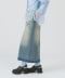 生地にヒゲ加工で自然な履きジワ、ブラスト加工で色落ち、さらにオーバーダイ加工で色をのせています。さらにグラインダー加工でダメージを加え、ヴィンテージライクな風合いに仕上げています。