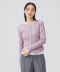 細めのリブ編みとシャープなウエストラインが特徴の、すっきりとしたカーディガンです。裾のラウンドカットとシルバーのスナップボタンが、エッジの効いたアクセントに。1枚でもインナーとしても活躍する万能なひと品です。