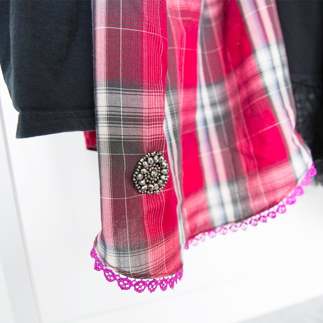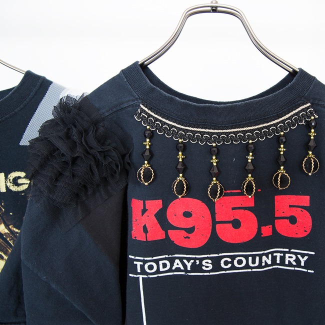 会期中、3月23日(土)・24日(日)の2日間は、デザイナー鈴木ゆうみが実際に店頭に立ち、お客様のご要望に合わせてアイテムのカスタムを承ります。今回のアイテムは、Tシャツ、チュニック、スカートの3型のボディをご用意。そして、選んだボディに、チャイナボタンやバンダナ、ジップ、レース、フリンジ、つけ襟などの<Yuumi ARIA>ならではの豊富な装飾の中から、お好きなパーツの組み合わせが可能です。