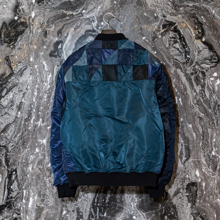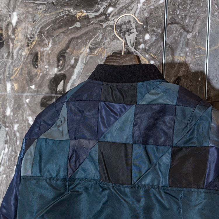 リリースして5年になる定番アイテムのヴィンテージMA-1を、解体再構築しつつオリジナルディテールを入れてアップデートしています。パッチワーク部分はデニムなどにも使用している切り替えの手法で、所有していたアーカイブから着想しオリジナルで作成した切り替えを採用しました。寄木細工の柄のようで見え気に入っています!