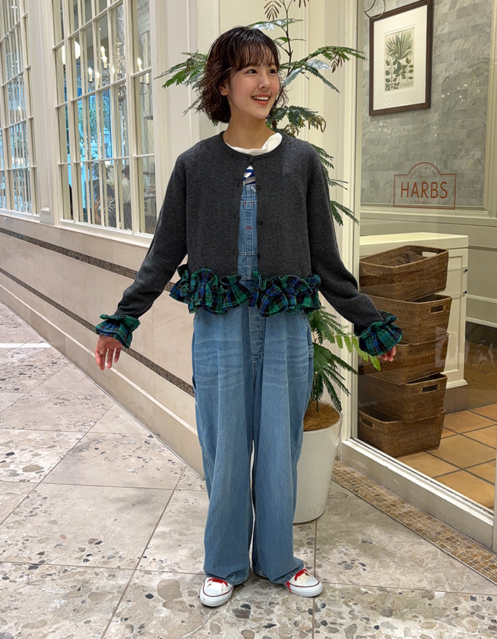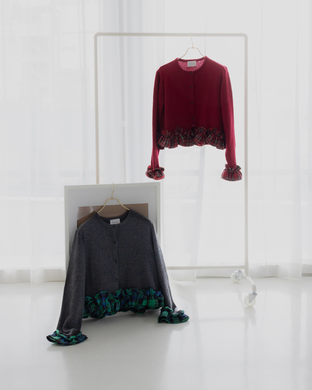 甘さを抑えた可愛らしさと、体型や気分に合わせて自由に楽しめるのがこのフリルリボン付きニットカーディガンの魅力。