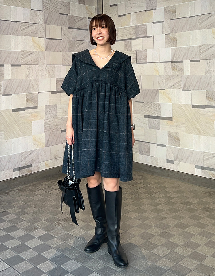 そんな思いから生まれたツイードウールのチェックミニワンピース。