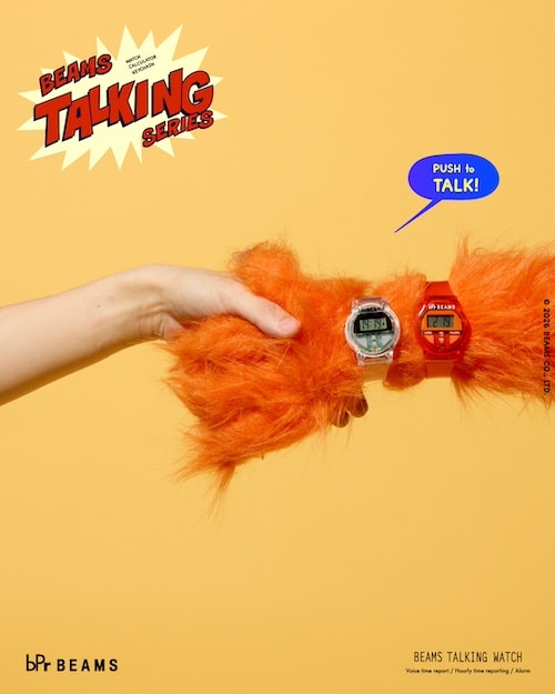 The BEAMS T Talking Series, an iconic bPr BEAMS item that was launched in 1996 and sold until 2001, and was reissued once in 2016, is now making its long-awaited comeback after 10 years to mark the 50th anniversary of BEAMS. This series features a unique talking function that tells you the time by voice, saying "It is now XX PM" when you press the button.