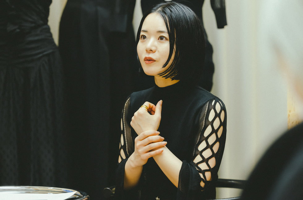 「インターナショナルギャラリービームス」のディレクター、片桐恵利佳が、今気になっているファッションデザイナーと対話する対談連載。記念すべき第一回は、2022AWシーズンからお付き合いのある〈FETICO(フェティコ) 〉の舟山瑛美。身体のラインを見せる大胆なパターンワークと、女性の美しさを引き出す繊細なディテールが魅力のブランドに、デザインの真髄や最新コレクションへの気持ちなどをインタビューしました。
