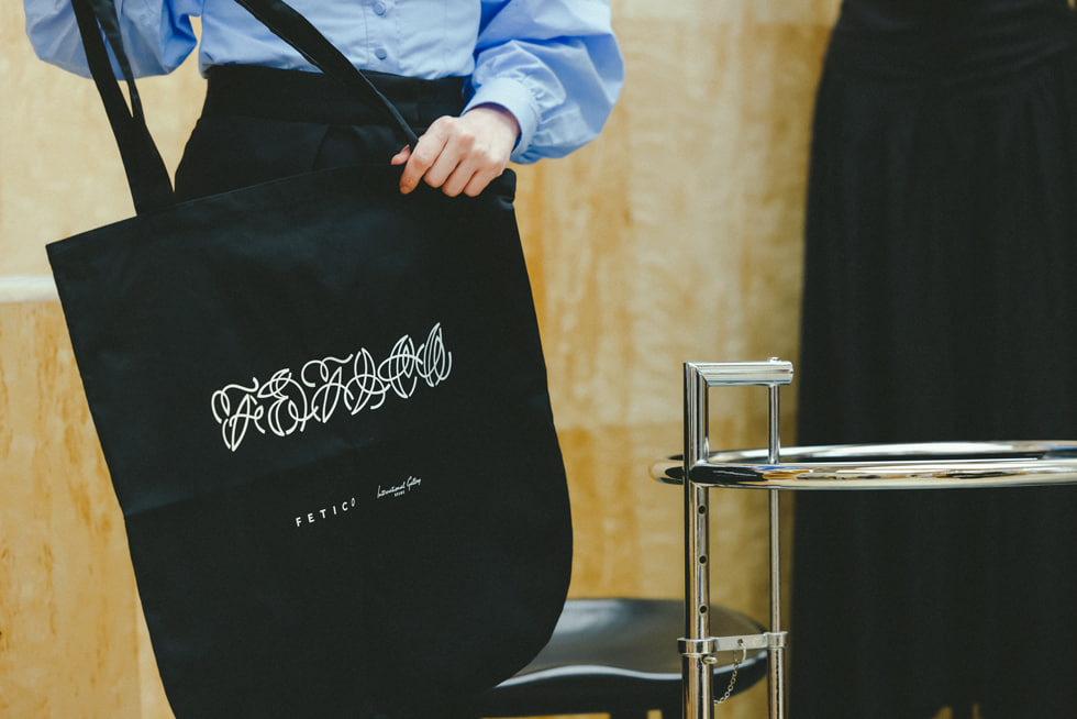 片桐:期間中は、数量限定ですがノベルティとして購入いただいた方にオリジナルのトートバッグをプレゼントします。〈FETICO〉らしいブラックカラーで、真ん中に新しいロゴをプリントさせていただきました。