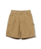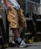 退色表情の出るダック素材を使用。特有のムラとフェード感がポイント。3本ステッチやハンマーループ、サイドのパッチポケット等、王道ペインターパンツのディテールが特徴。プリーツを入れ、オーバーサイズでウエストを絞って穿いたようなルーズシルエット。膝が隠れる6分丈でソックスとのコーディネートも楽しんで頂ける1着になっています。