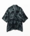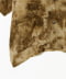 メッシュジャガード織りのレーヨン生地に、色の濃淡を不均一に定着させるムラ染めを施しています。メッシュ構造による高い通気性と吸湿性を備え、シャリ感のあるドライな手触りが特徴。多層的な色彩の重なりが、平面的な布地に奥行きのある視覚効果を与える構成です。