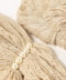 センターで留めることが出来る5連パール付きホックがキレイで華やかな印象に。さり気ない輝きを放つラメ糸が華やかな印象をプラス。上品なフリンジが全体をきれいにまとめてくれます。ちょっとしたお呼ばれの日のコーディネートにも馴染む1枚です。