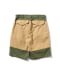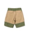 ヴィンテージのロガーパンツをベースにショートパンツにデザイン。前後を二重生地にしてラギッドな雰囲気に仕上げています。