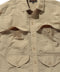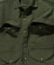 前身頃の肩から胸にかけて2重になったディテールや、通常のポケットの上に設けたグラスホルダーを兼ねたツールポケットやスモールポケットなどの凝ったポケットワーク。