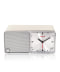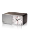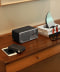 スイスの<GENEVA>から、アナログクロックとスマートフォンのワイヤレスチャージ機能を装備したBluetoothスピーカーが登場!ブランドを特徴づけるTouringシリーズと同じエコレザーに包まれたボディの中には、フルレンジスピーカーとパッシブラジエーターを内蔵し、その小型で軽量のボディから想像を超えるクリアでバランスの良いサウンドを放ちます。アラーム機能を備えたアナログクロックは、ベッドサイドやデスク等で時を刻み、お持ちのスマートフォンを載せるだけで充電が可能なワイヤレスチャージ機能も現代のニーズに応えます。天面のワイヤレス充電マークはエンボス加工が施されていて、スマートフォンを載せる位置が一目で分かり、素早く充電が可能。さらに、背面にもUSB出力端子が装備されていて、本機1台で最大2台のスマートフォンの充電が可能です。