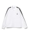 〈Evisen Skateboards〉と〈髙田音楽製作事務所〉のコラボレーションアイテム。チャイナボタンがポイントのベースボールカラージャケット。ストレッチナイロン生地のスポーティーな印象で、チャイナボタンのドレッシーな雰囲気を中和したデザインが特徴。左胸には〈Evisen Skateboards〉と〈髙田音楽製作事務所〉のコラボダイガーロゴを刺繍。襟から袖にかけて、コラボデザインのジャカードテープも配置。