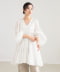 ■ディテール袖口にはゴムが配され、ふんわりとブラウジングした着こなしも楽しめる仕様。Vネックがデコルテを美しく見せ、甘くなりがちなティアードデザインを程良く引き締めます。
