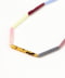 マルチカラーのパーツが連なる、カラフルで可愛いネックレス。シンプルなTシャツやシャツに彩りを添え、顔まわりを華やかに演出します。