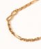 細い線を丁寧にねじって形づくられたモチーフが連なる、ヴィンテージライクなネックレス。留め具の棒を好きな位置の輪っかに通して固定できるため、装いに合わせた自由なアレンジが楽しめる設計です。曲線を描くラインが、華奢でありながらも胸元で確かな存在感を放つデザイン。