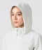 ■ディテールフードは収納可能。裾にはドローコードを配し、絞ることでシルエットに変化をつけられるため、その日の気分に合わせた着回しを楽しめるのが魅力。