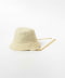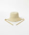 キルトライクな素材感を活かすように、シンプルなシルエットとボリュームに拘ったバケット型ハット。イヤーフラップとリボンがポイントで、顎でリボンを結んだり垂らしたまま被ったりと様々なアレンジが楽しめます。