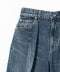フロントに深く入ったタックが、立体的なワイドシルエットを形作るストレートデニム。 腰回りはすっきりとさせつつ、膝から裾にかけて圧倒的な生地のボリュームを持たせることで、迫力のあるフォルムに仕上げています。中央に走る切り替えのラインが縦の意識を強調し、ルーズに見えがちなワイドデニムに端正でモードな表情をプラスしたひと品。