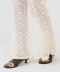 凹凸感のある花柄レースを贅沢に使用した、存在感のあるレースパンツ。裾にかけて大胆に広がるフレアシルエットがメリハリのある美しいバランスを演出します。裏地はあえて短めに設定し、レースのシアーを活かして軽やかな抜け感をプラス。