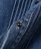 胸元に繊細なピンタックが施されたデニムブラウス。クラシカルなリボンタイと、デニム特有の野生的な雰囲気が融合した存在感のあるデザイン。上品さとカジュアルさが絶妙に調和したひと品です。