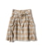 クラシカルなチェック柄にモダンなギミックを効かせた、膝丈のフレアスカート。ウエストの中心に施された存在感のあるドローコードが、全体の印象を引き締める目を引くアクセントを添えています。