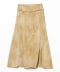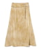 上品な光沢のあるサテン生地に、同色系のマーブルプリントを施したスカート。ウエストのフェイクベルトと華奢な共紐が、さりげないアクセントになります。