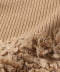 本体には上品なツヤ感とカジュアルさを両立させた梳毛糸を、フリンジ部分には異なる素材の糸をミックスしてループ状に編み上げました。異なる素材感が、さりげないアクセントとなり、奥行きのある表情を生み出します。