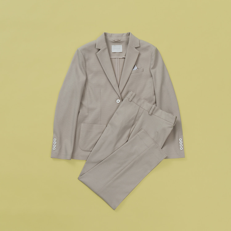 定番の良質なジャージ素材を使用した着心地の良いジャケットをはじめ、パンツとセットアップで着用できるビジネスシーンに活躍するアイテムなど、豊富なラインナップを取り揃えます。春夏らしいストライプやチェックのプリントも登場。イベントから取り扱いを始めるアイテムも含め圧巻のバリエーションをご紹介します。