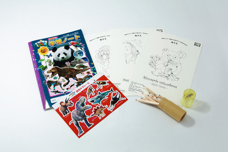 さらに、その場ですぐに遊べる色鉛筆セットや、『学研の図鑑LIVE』の特典であるノートやシールなど、合わせて6点のノベルティをご用意しています。