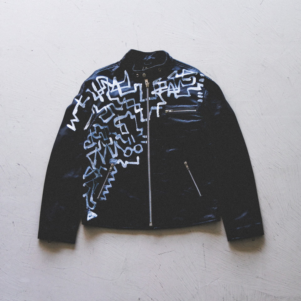 本イベントでは、約40着のライダースのほか、軍物やカットソー、ファッション小物に独自のペイントを施した〈カタヤマケンジ アパレル〉を多数展示販売します。また、お持込頂いたアイテムにご希望のペイントを施すライブペイントも受付けます。
